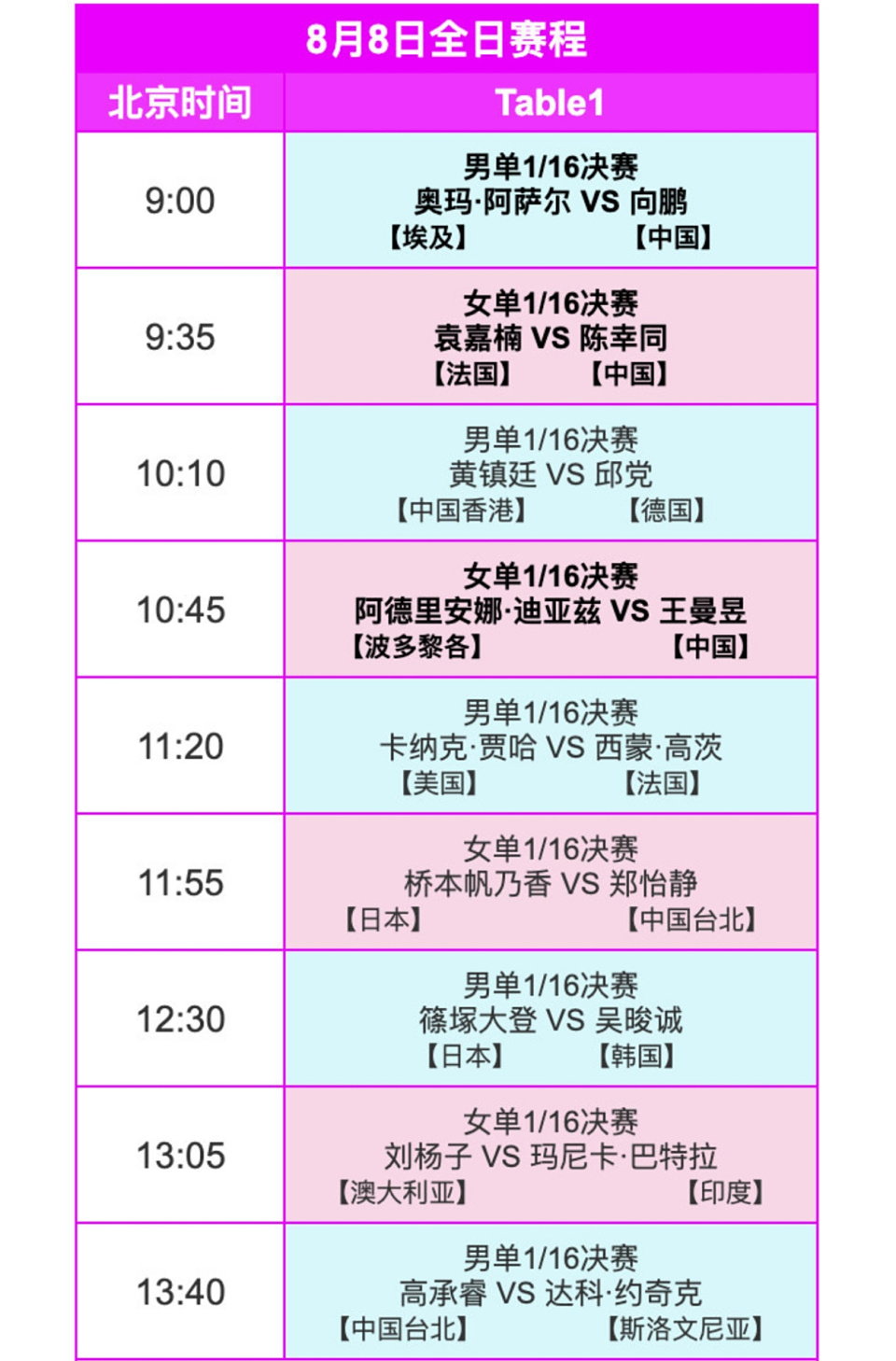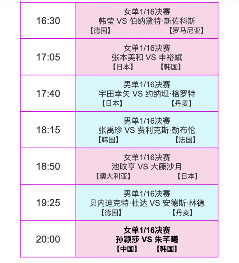 明天比赛继续进行,产生其余的8个16强席位。具体赛程如下图: