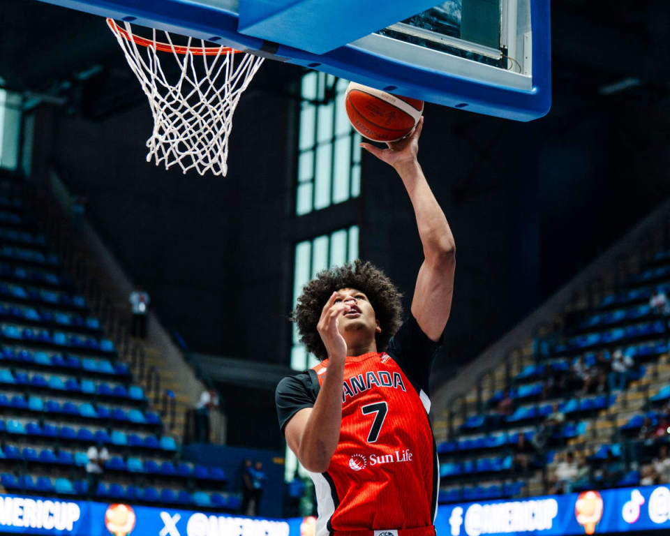 本场比赛中,加拿大队的先发后场新星凯肖恩-乔治(Kyshawn George)的表现算得上是非常抢眼。乔治全场出场31分39秒,投篮10中5,三分线外4中2,罚球6中5,得到了19分5篮板4助攻1抢断1盖帽的数据,还有3次失误和2次犯规,正负值为+7。乔治在进攻端也是展现出了全面的得分能力,他能够提供突破完成得分,他的终结能力还算不错,他也展现出了不错的外线投射能力。不仅如此,乔治也是具备不俗的传球能力和组织能力的,而且他在防守端也是起到了决定性的作用。总体来看,乔治在攻防两端的表现都非常抢眼,他是球队场上的关键人物,他也是充分发挥出了自己的特点并且为球队的胜利做出了不小的贡献。